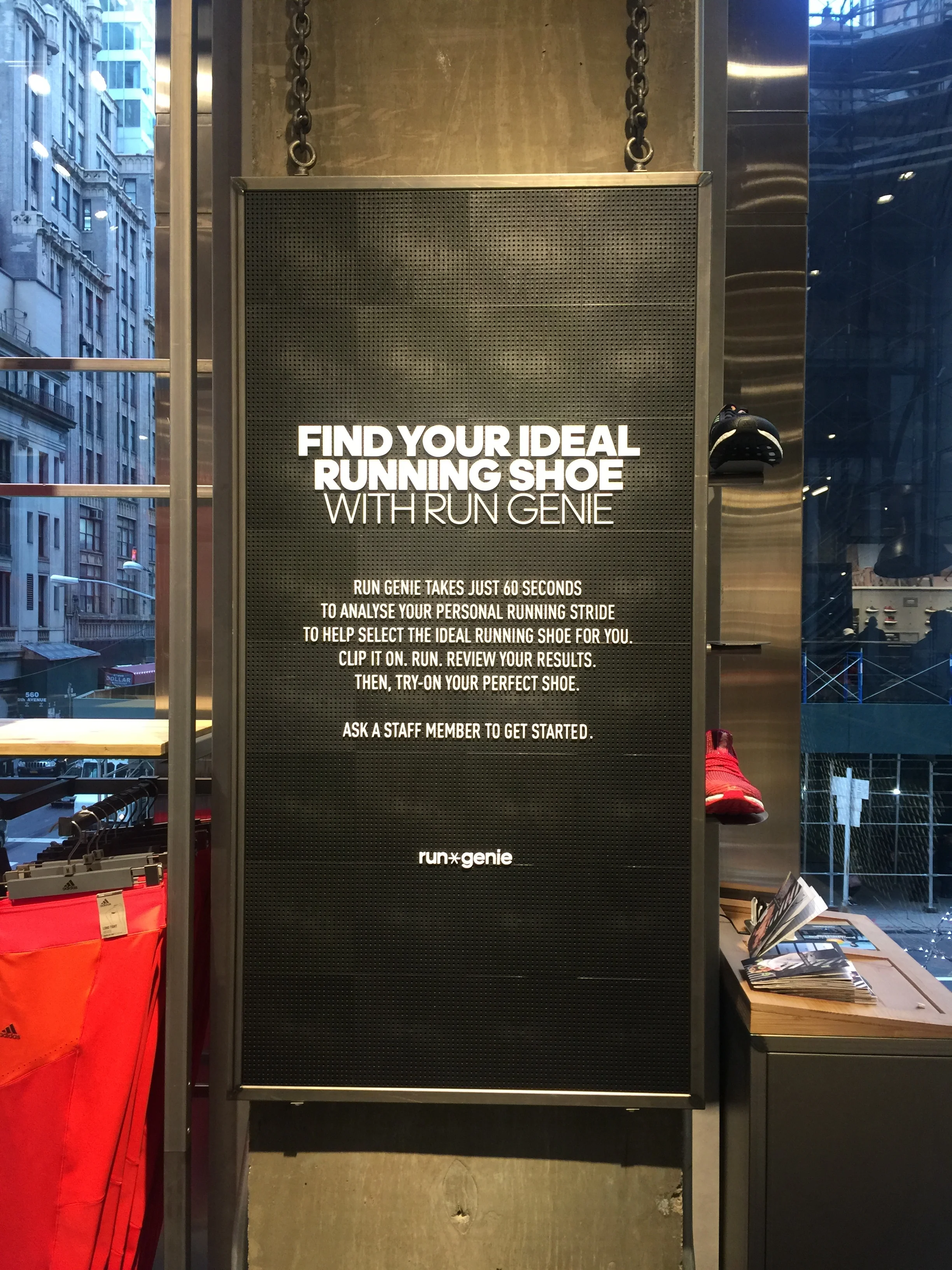 5. "Bra bar" e pista de corrida para avaliação de pisada: no 2º andar, aonde estão localizados os produtos femininos, é possível escolher o tipo certo de top para cada necessidade. Através de um tablet, a cliente consegue saber o tamanho, modelo e tipo de compressão ideal do top de ginástica a ser comprado. No mesmo andar fica uma pequena pista de corrida onde os vendedores identificam o modelo de tênis ideal para o seu estilo de corrida e pisada.