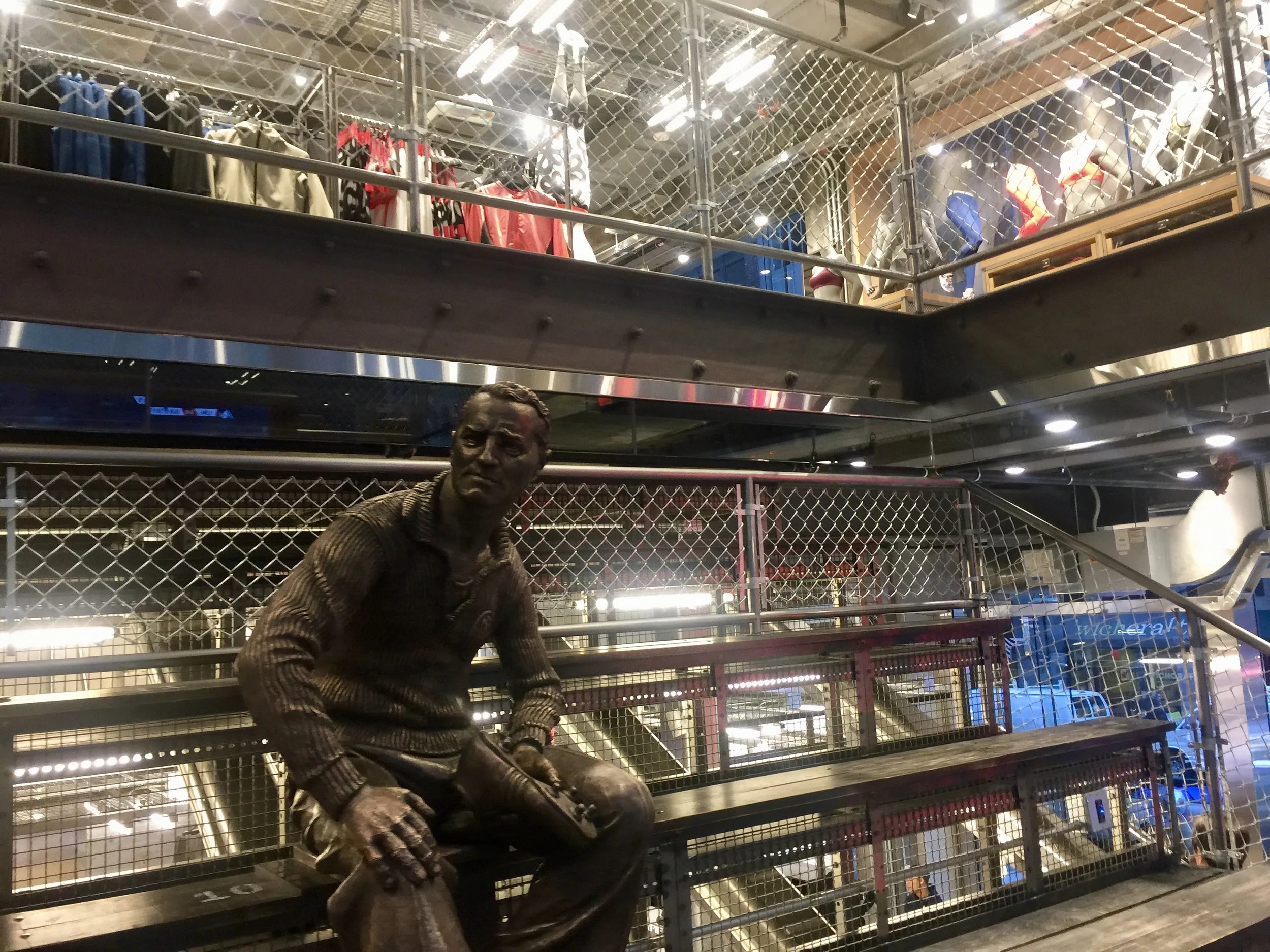 2. Arquibancada com vista e transmissão de jogos: entre o 1º e 2º andar foi feita uma arquibancada aonde as pessoas podem sentar para descansar, observar o movimento da rua e ainda assistir jogos ao vivo em uma televisão. Atenção para a estátua do Adolf Dassler (fundador da Adidas), a única além da localizada nos headquarters da marca na Alemanha. Além de ser perfeita para "selfies," ao ganhar um "beijo na bochecha," a estátua reproduz a imagem da pessoa na televisão.