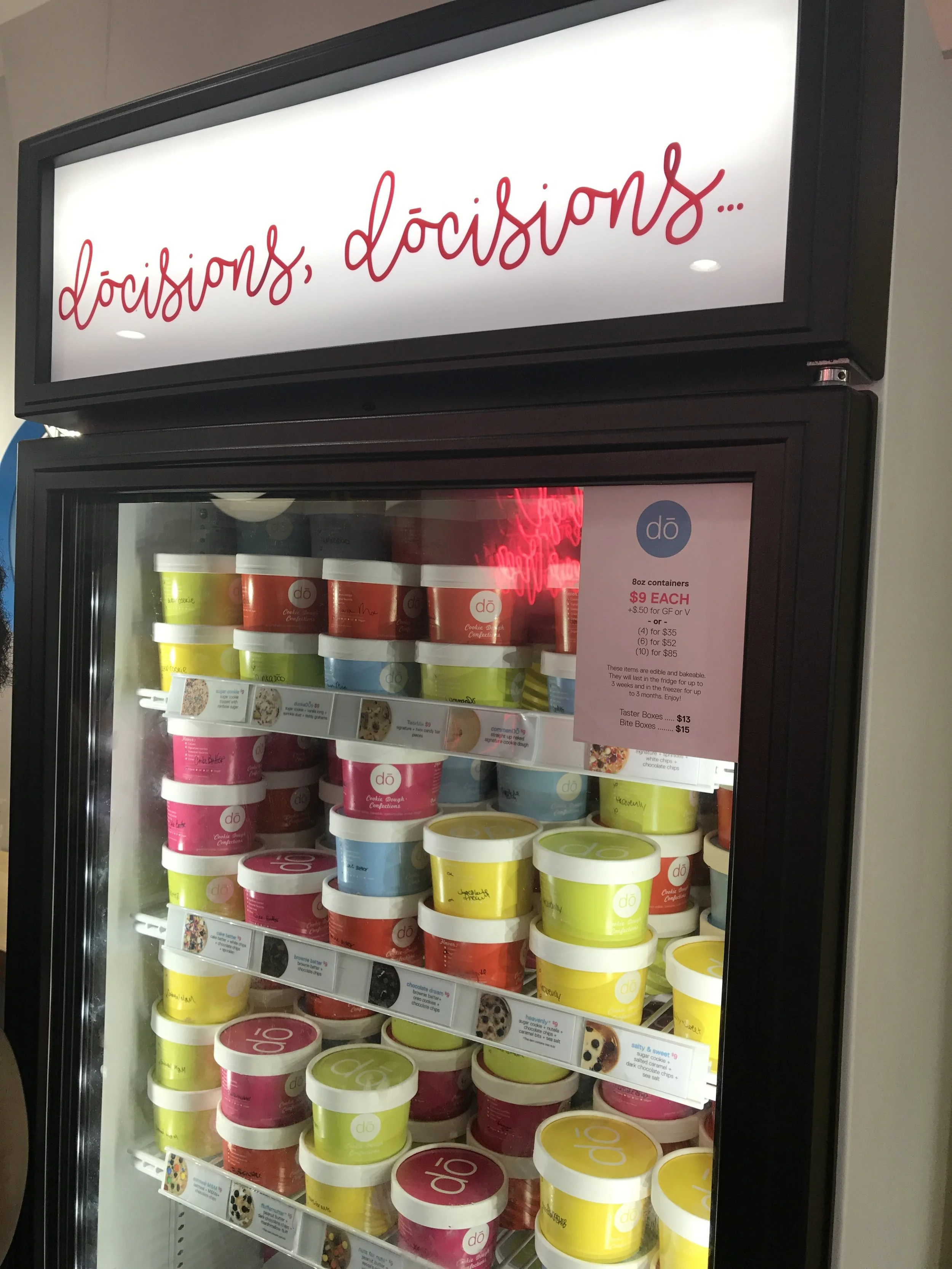 Sabores de cookie dough disponíveis na DO, incluindo versões sem glúten e veganas.