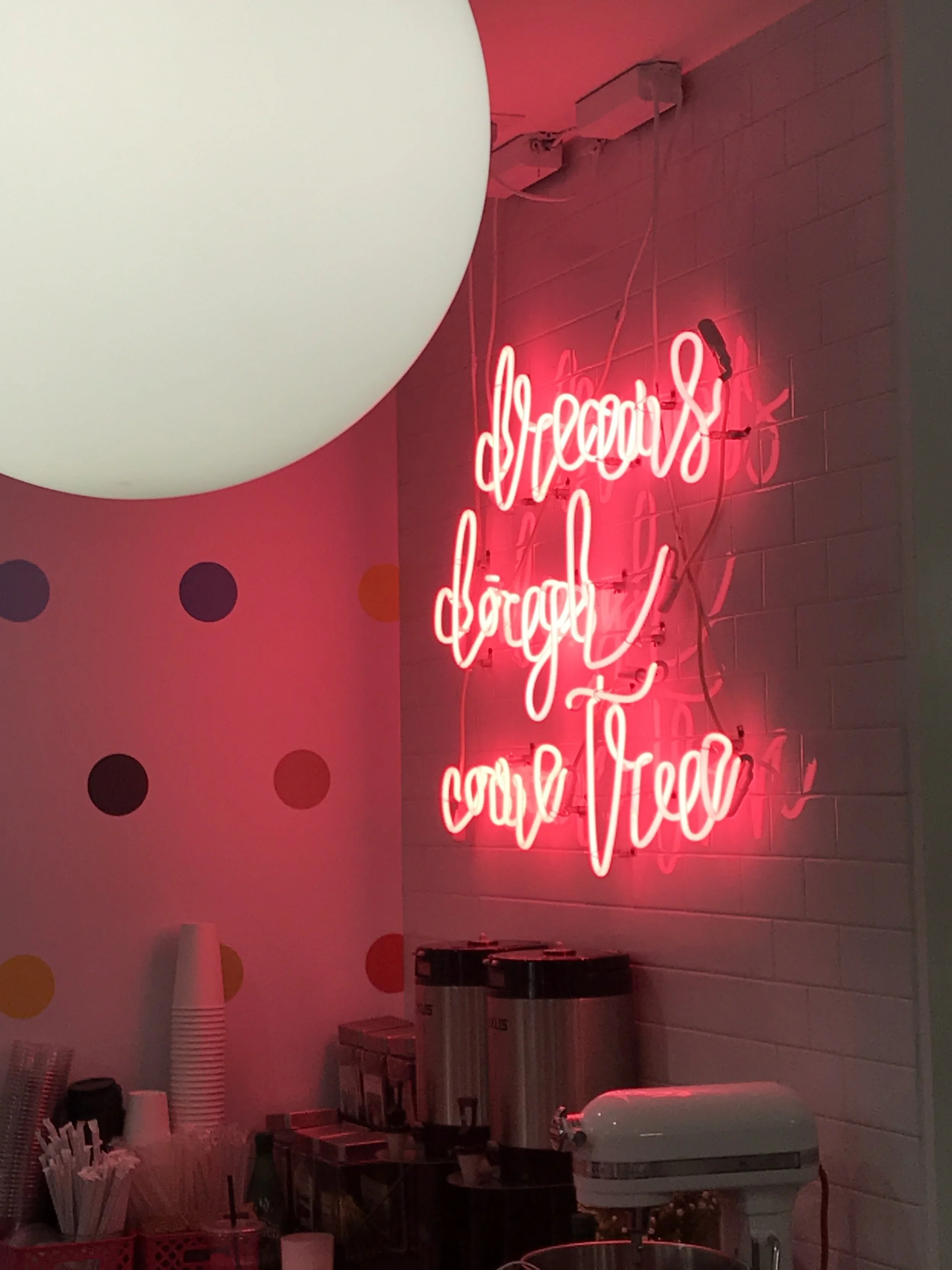Tudo na DO é 100% "Instagramável", da decoração de poás coloridos, muito cor-de-rosa e letreiros de neon, às embalagens e, é claro o próprio produto. A loja virou destino certo pra quem vai a NY depois de aparecer em um daqueles vídeos de comida que viralizam no Facebook.