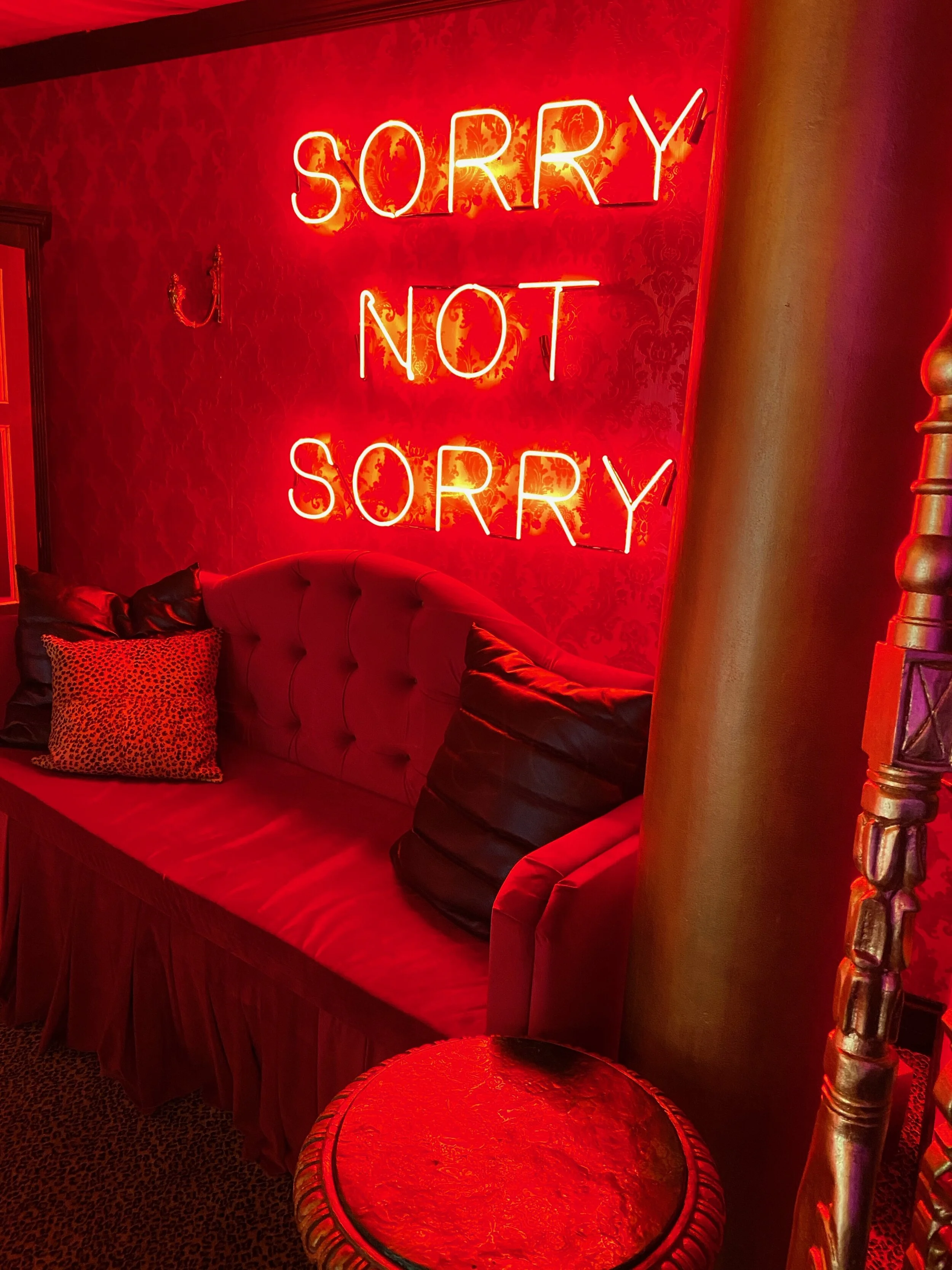Escondida no piso inferior no fundo do estoque ao final de um corredor cercado por casacos, a VIP Room é o auge da experiência instagramável. Na época da minha visita, o tema da decoração era os sete pecados capitais - inspiração também para uma coleção limitada lançada pela marca. Entrar no espaço de dois cômodos é como ser transportado para um outro lugar completamente diferente, todo escuro e intensamente decorado com neons, plantas artificiais, veludo e outros objetos - é a experiência imersiva perfeita de quem não dispensa um cenário interessante para compartilhar nas redes sociais.