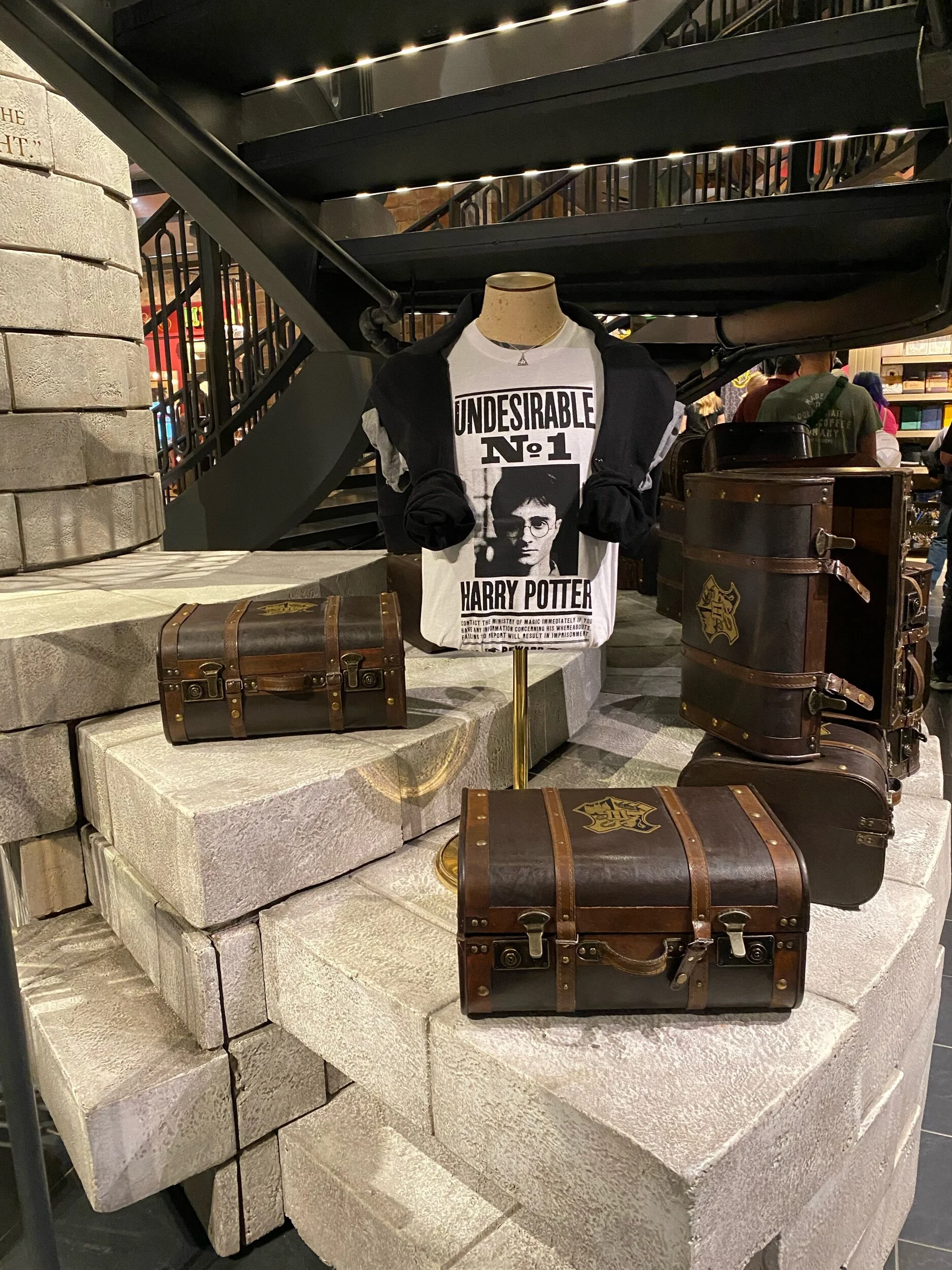 O ponto alto fica por conta da escadaria com a fênix na parte central da loja, acesso para as salas dos andar de baixo. Em termos de VM, não dá pra perder também a livraria, a loja de doces Honeydukes e o Butterbeer Bar com suas mais de 1.000 garrafas da cerveja amanteigada dos bruxinhos subindo pela parede.